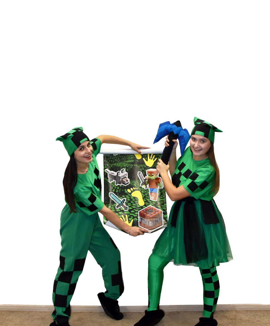 Однією із важливих характеристик цієї гри є те, що світ складається ніби з величезних пікселів. Тож саме цю ідею ми перенесли в реальність, створивши дуже яскраві та подібні до гри костюми. Впевнені, діти їх одразу ж упізнають.